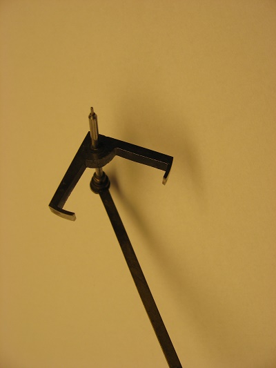 Der massive Anker besteht aus einem Stück. Hat also keine verschiebbare Paletten. Jendritzki ein schweizer Lehrer für Uhrmacher und Buchautor empfiehlt, den Anker zusammen zu biegen. Ich halte das für einen schönen Pfusch. Der Anker kann zerbrechen. Und bei der nächsten Reparatur?
