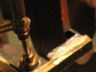 Auf die Ankerschenkel wurden Messingstäbe geklebt, mit diesen kann durch beilegen von dünnen Scheiben die Ruhe korrigiert werde.